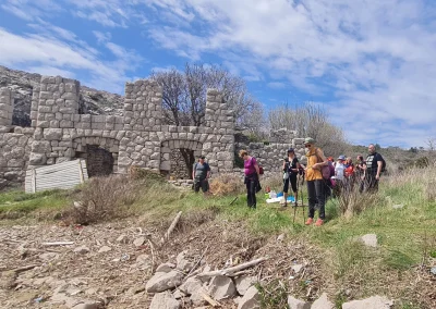 The trail continues through the forest and reaches the village of Dolovo, a small abandoned and authentic island settlement with a peaceful atmosphere and deserted houses. We then proceed to Kaštel Gradec, the remains of a medieval fortress from which the famous Frankopan princes originated. It once served to monitor this part of the island and offers a breathtaking panoramic view of the surrounding landscape.
