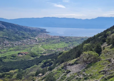We continue westward to Batomalj, home to the largest diocesan Marian sanctuary, one of the oldest in Croatia. From there, we ascend to the restored Lipica mrgari (stone shelters), and the trail passes through sparse vegetation toward Obzova and Veli vrh, offering breathtaking views of the islet Košljun and Kornić – important pilgrimage sites.