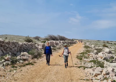 The path then follows the rocky northeastern coastline along the Vinodol Channel to Slivanjska Bay, one of the most beautiful sandy beaches on the island. Along the way, we will also visit Biserujka Cave, famous for its rich stalactites and calcite pillars – a natural gem not to be missed.