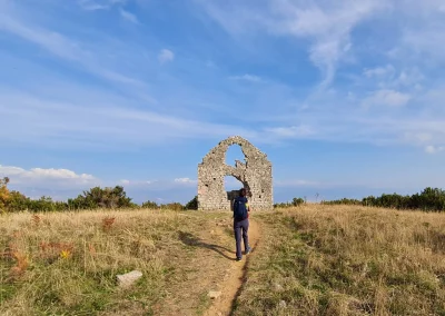 The route continues through Rudine and forested areas within the municipality of Dobrinj until we reach Čižići, where the remains of St. Peter’s Church await us – a beautiful conclusion to the day and this stage of the Camino.